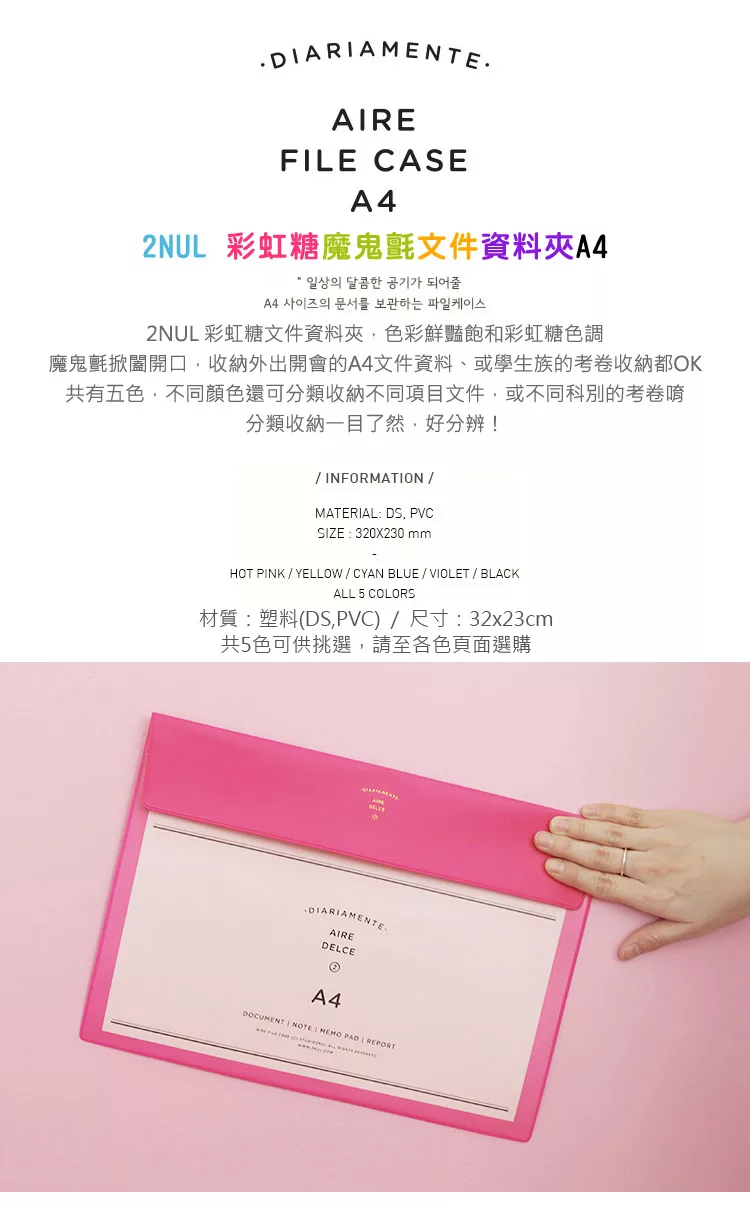2NUL 彩虹糖文件資料夾,色彩鮮豔飽和彩虹糖色調,魔鬼氈掀闔開口,收納外出開會的A4文件資料、或學生族的考卷收納都OK,